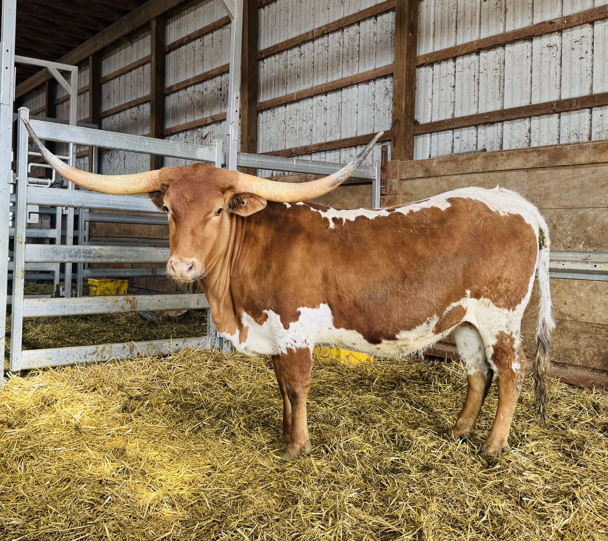 Power, Pedigree & Twist Genetics Take a hard look at the depth of body of this outstanding Elvis LM daughter. HNB Flossie combines elite horn genetics with structural power and maternal value — the kind of female that anchors a program. Sired by Elvis LM, the maternal brother to the legendary 3S Danica, both out of the 103” TTT 3S Touchdown Tari. This puts Flossie directly in one of the most proven horn-producing cow families in the breed. On the bottom side, she is out of a 50% Butler 20 Gauge daughter, adding consistency, fertility, and market-recognized genetics that complement the horn power up top.