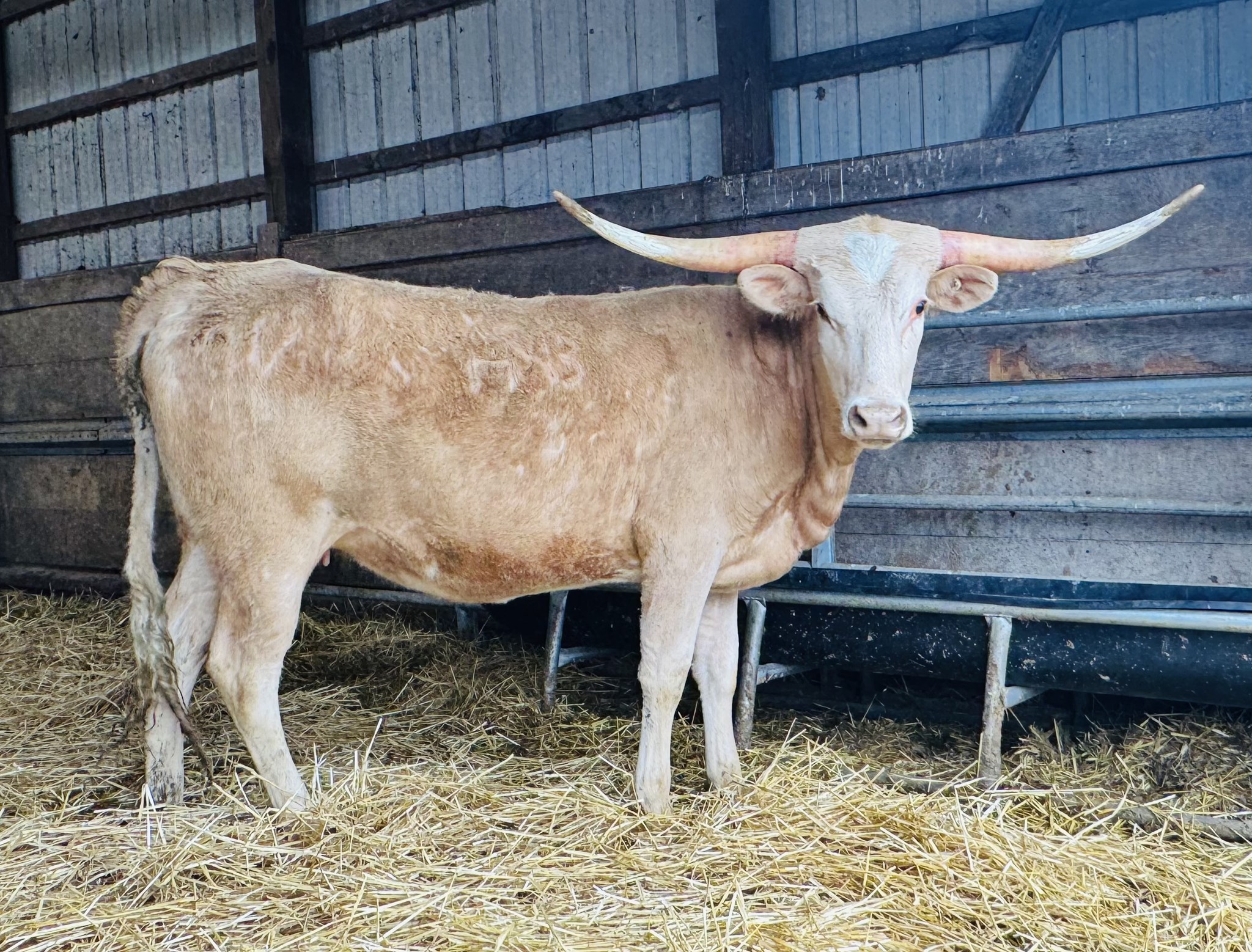 Penelope 07 is a 4th generation dun female with rare color genetics and proven longevity behind her. Females like this don’t come along often — especially ones backed by deep horn and maternal strength. A daughter of Stone Red 671. Son of the Legendary D/O Miss Grande. Full brother to the 104” TTT $165K Helms Miss Impressive. Her dam is on track for her 10th consecutive calf this spring, and her granddam, Watson 301, calved at 20 years old, showcasing incredible productivity and durability. This mating could deliver your next dun or grulla colored calf that combines D/O Miss Grande, WS Sunrise, and 3S Danica — a genetic opportunity not to be missed.